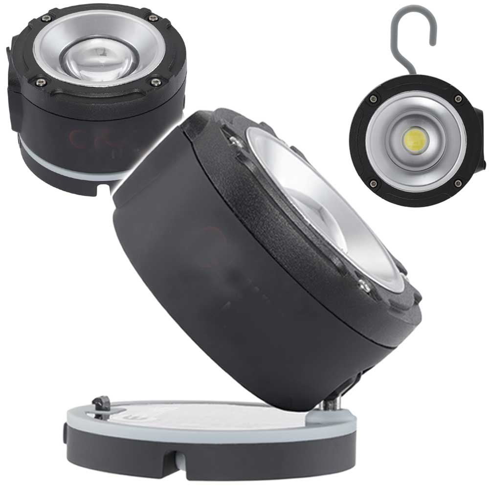 Laddningsbar unik ultrakompakt arbetslampa i proffskvalité!Kraftfull 6W COB lampa med optisk lins, har 2 ljuslägen – 1000/500 lumen. Lampan kan vinklas samt roteras 360°, har kraftfulla magneter i botten och infälld krok vilket ger stor flexibilitet vid användning. Med laddningsindikator. Lev med USB-laddkabel.