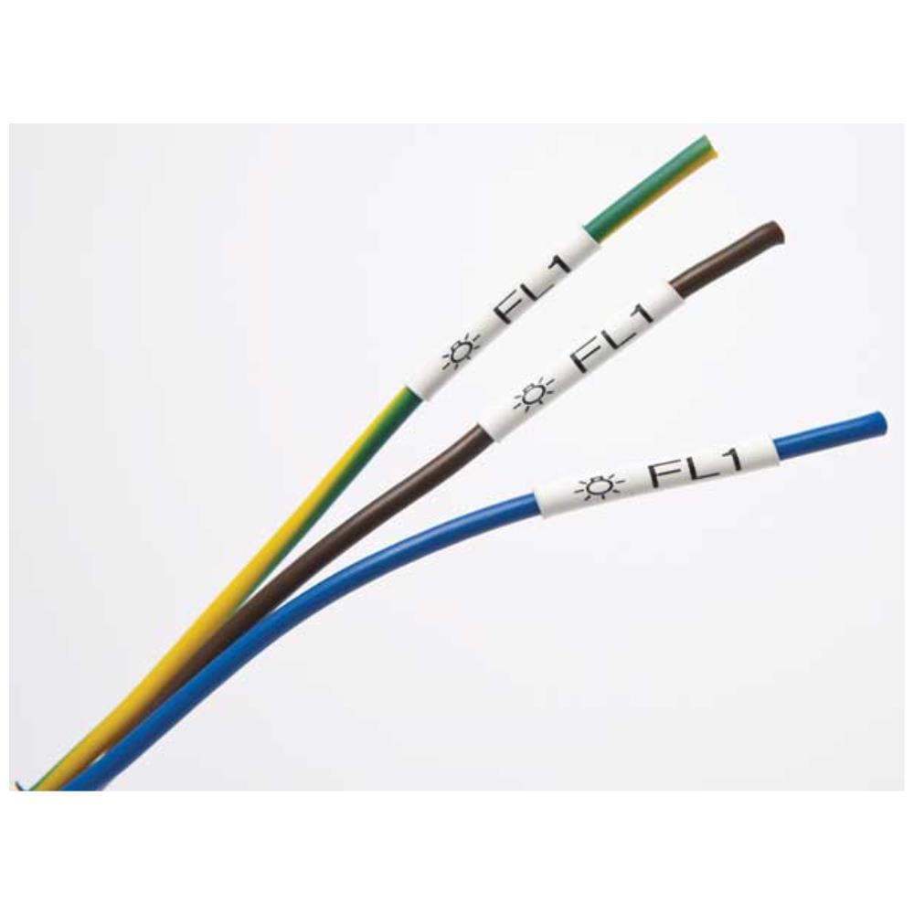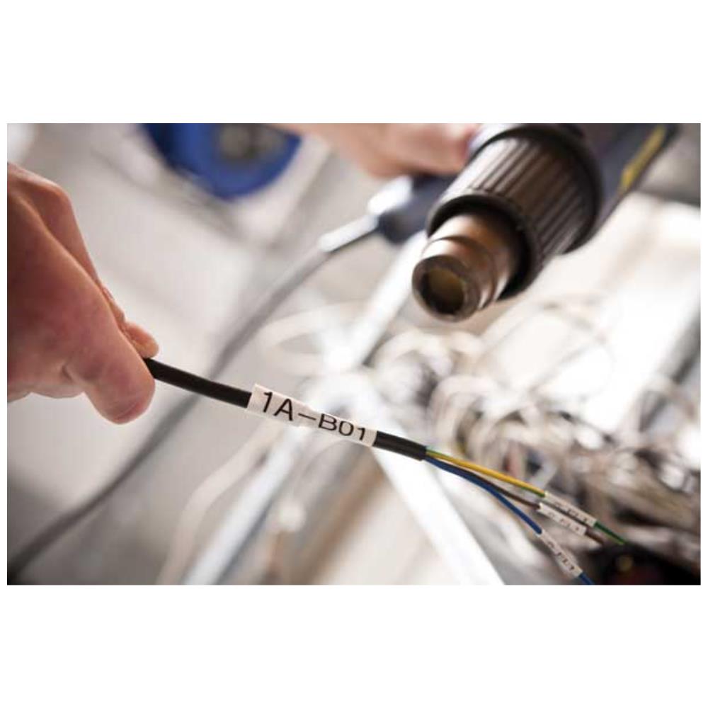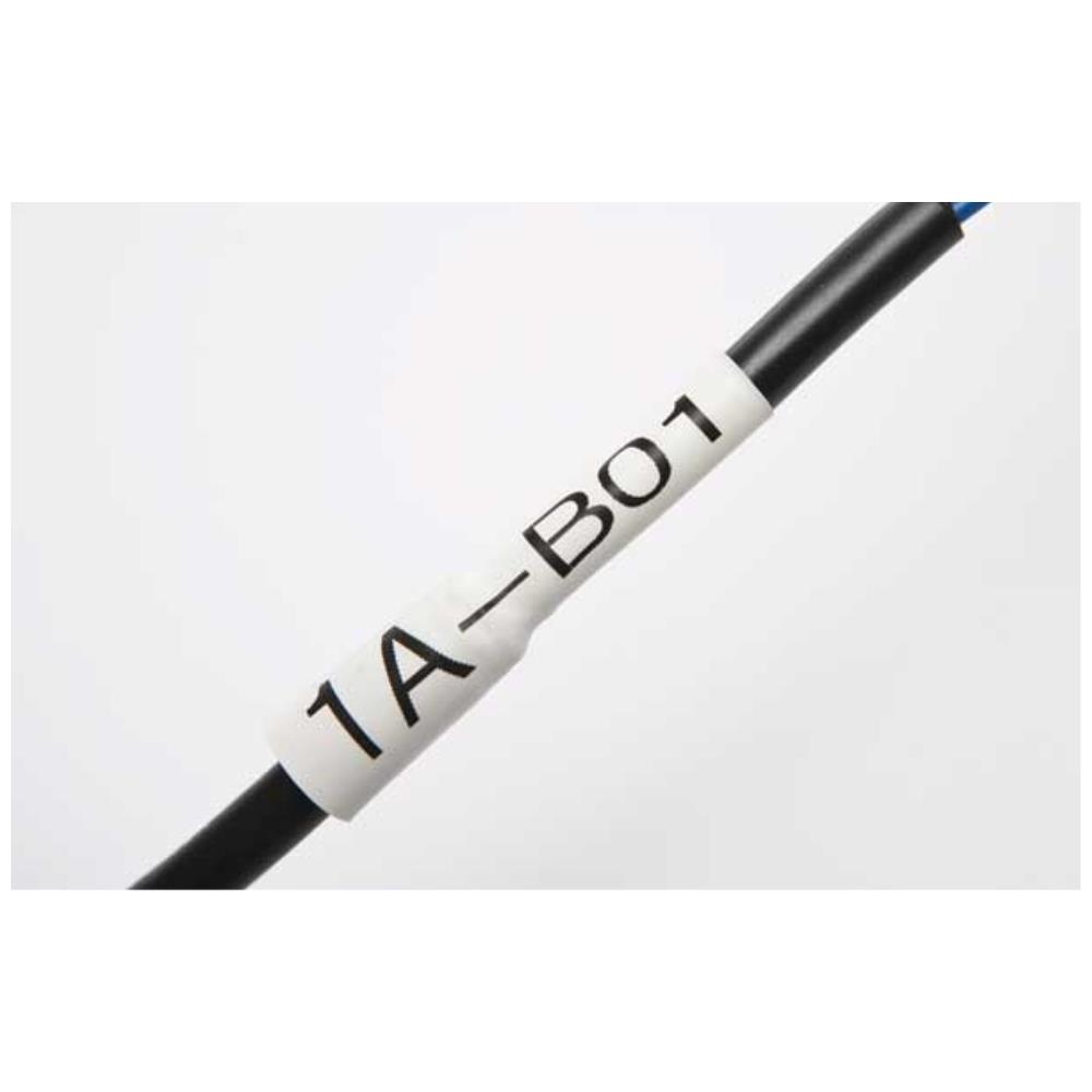 Kabelmärkning som även kan användas som krympslang. De täcker kabeldiametrar från 1.7 mm upp till 10.6 mm. Krympslangarna är vita med svart text. Lämplig värme för krympning är mellan 110 – 140°C. Krymper upp till ca 50% på diametern och 15% på längden. Krympslangen har en längd på 1,5 m. Passar till PT-E300 samt PT-E550.