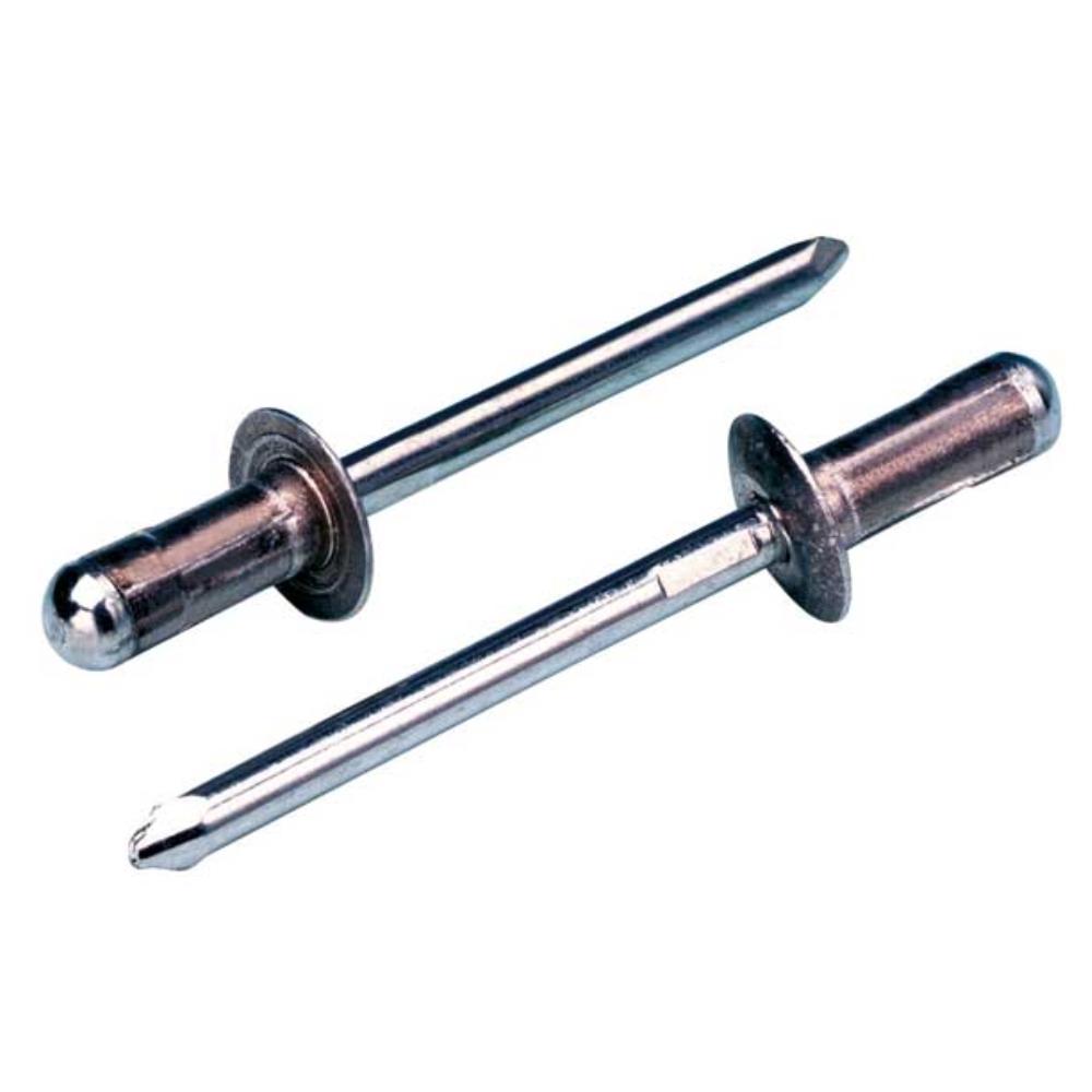 Blindnit med splint av stål och nit av aluminium med kullrigt huvud. Säkrat och inkapslat splinthuvud ger en luft och vattentät nitning.