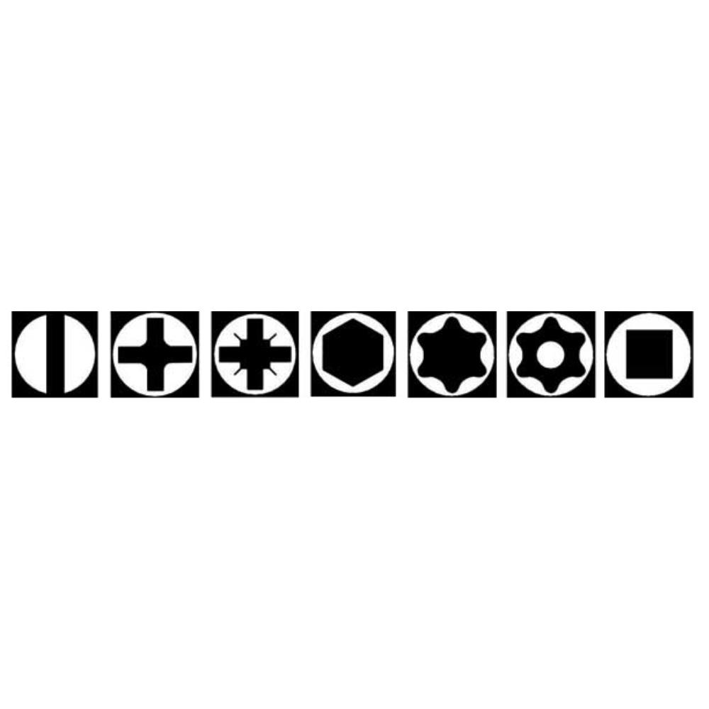 Torx: 2st T10-1st T15-3st T20-1st T25-2st T30-1st T40