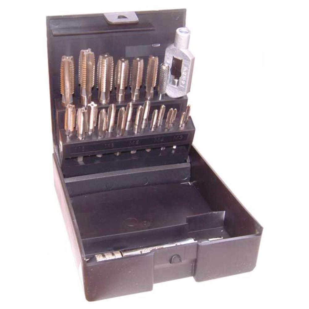 M3 – M12, 3 st mellantappar per dim. Innehåller även gängtappshållare med spärr samt ett svängjärn.