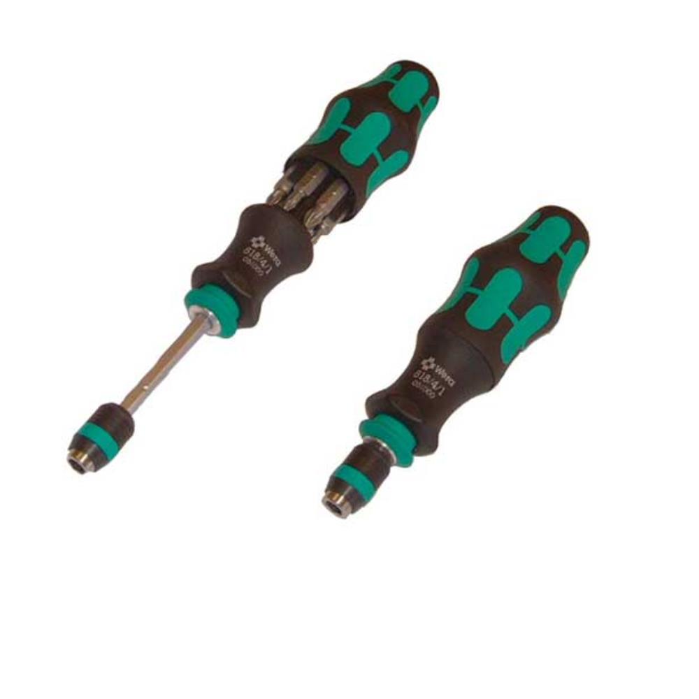 Med unik “stilettklinga” som enkelt trycks fram ur handtaget. Klingan kan även tas loss och användas som bitshållare i en skruvdragare. Enkelt och smart fäste för bitsen i bitshållaren. Bitssats med 6 st bits finns i handtaget: PZ1 – PZ2 – PH1 – PH2 – 5,5 – 6,5 mm.