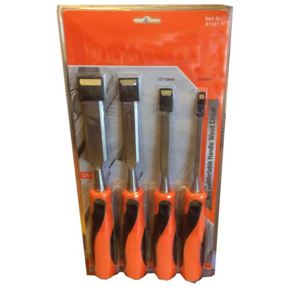 Kvalitetsjärn med skaft av slagtålig polypropen. Innehållande 4 st stämjärn.