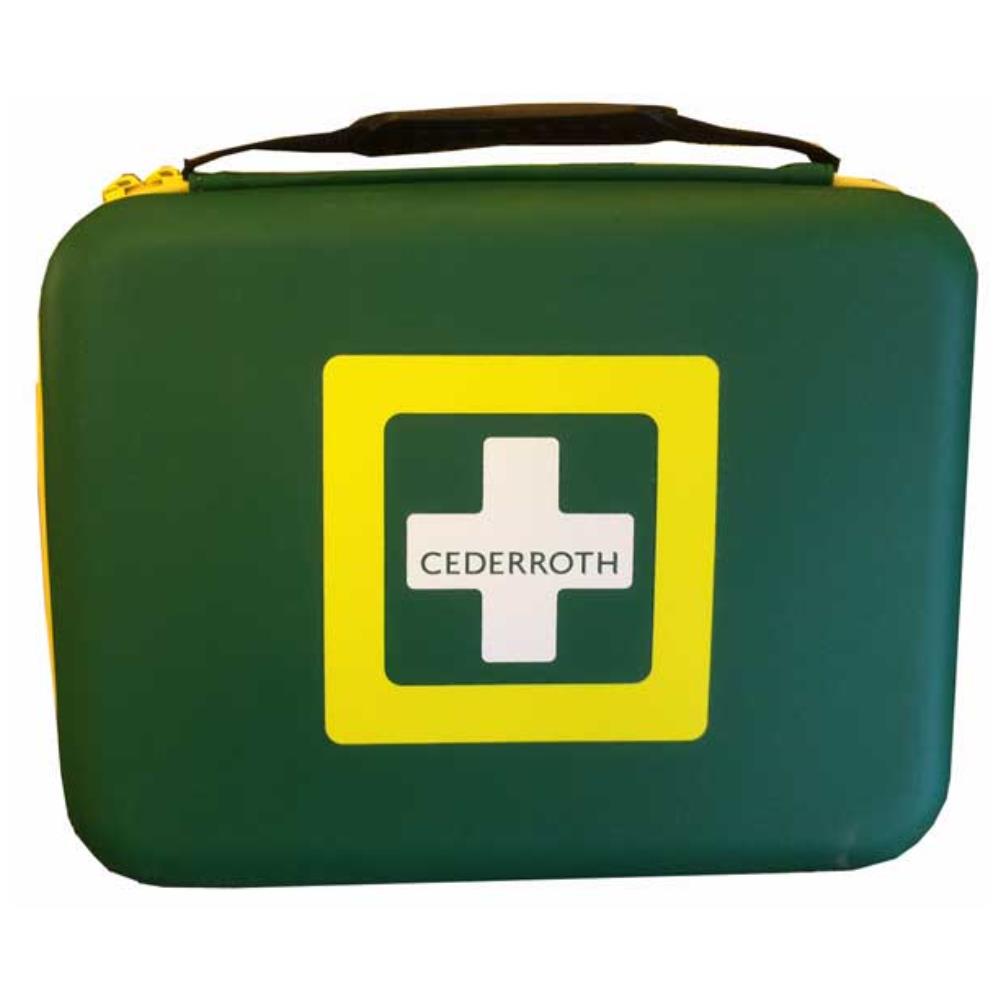Cederroth First Aid Kit Large är en välutrustad Första Hjälpen-väska konstruerad i ett gummiliknande material. Alla produkter är försedda med tydliga självförklarande instruktioner.