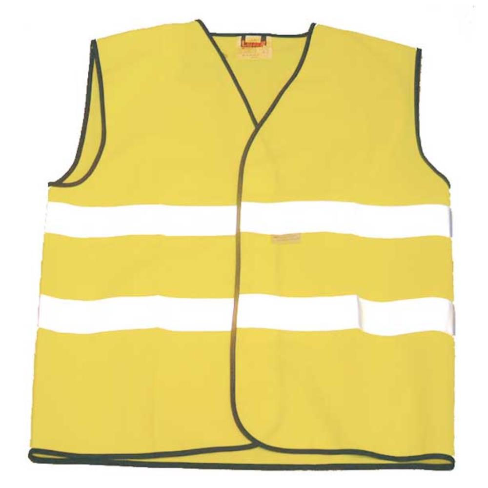 Flourescerande väv med reflex som syns bra både på dagen och natten. Kardborr-knäppning. Gul.
