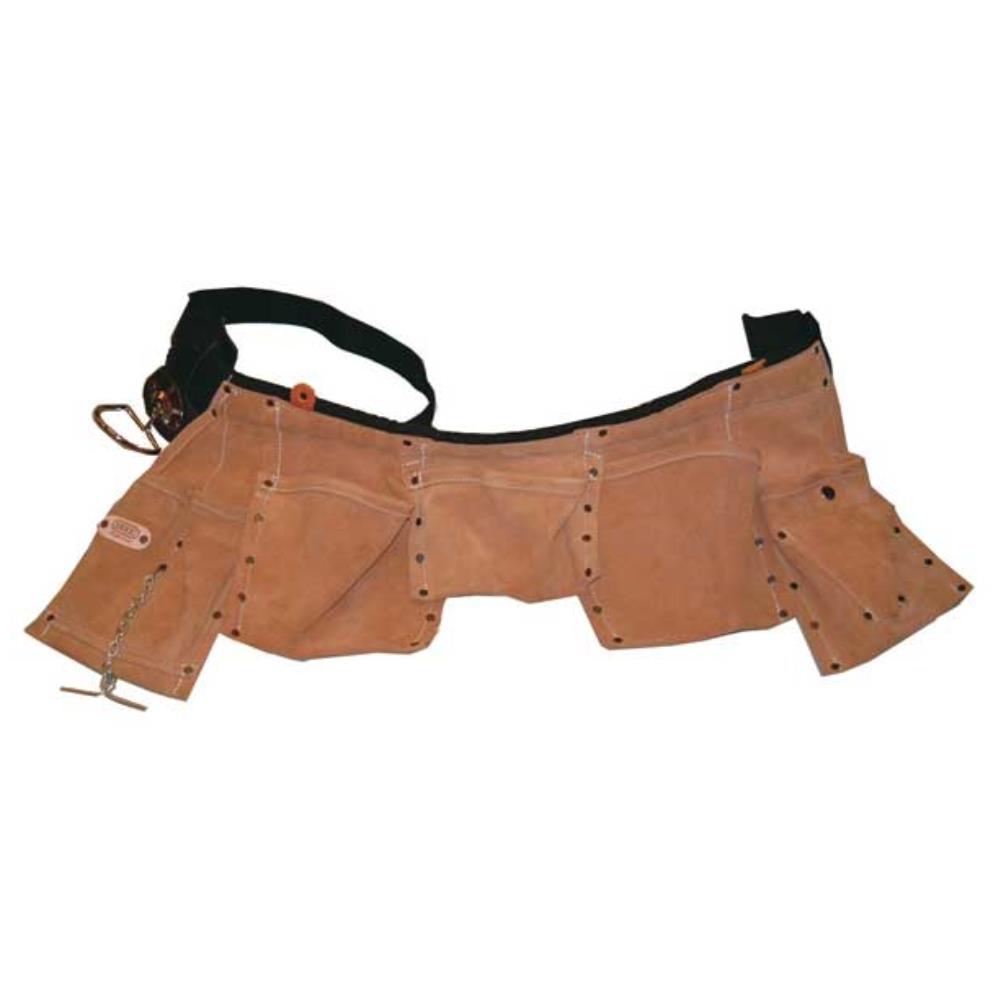 För elektriker, plåtslagare, montörer, snickare m fl. 3 spik-, skruvfickor. 7 verktygsfack, vänstra verktygsfickan kan även användas som spikficka. Hammarhållare i svart läder. Nitförstärkt med snabbspänne. 60 mm polstrad mjukrem. Tejphållare.