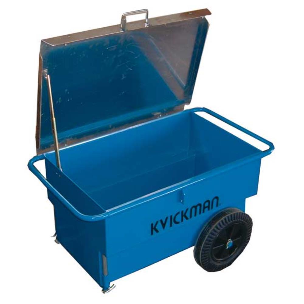Kan förses med standardback i plast 600×400 mm (skjutbara). Helgjutna gummihjul och ett kullagrat länkhjul. Kraftig låsregel. Stödben. Ugnslackerad.