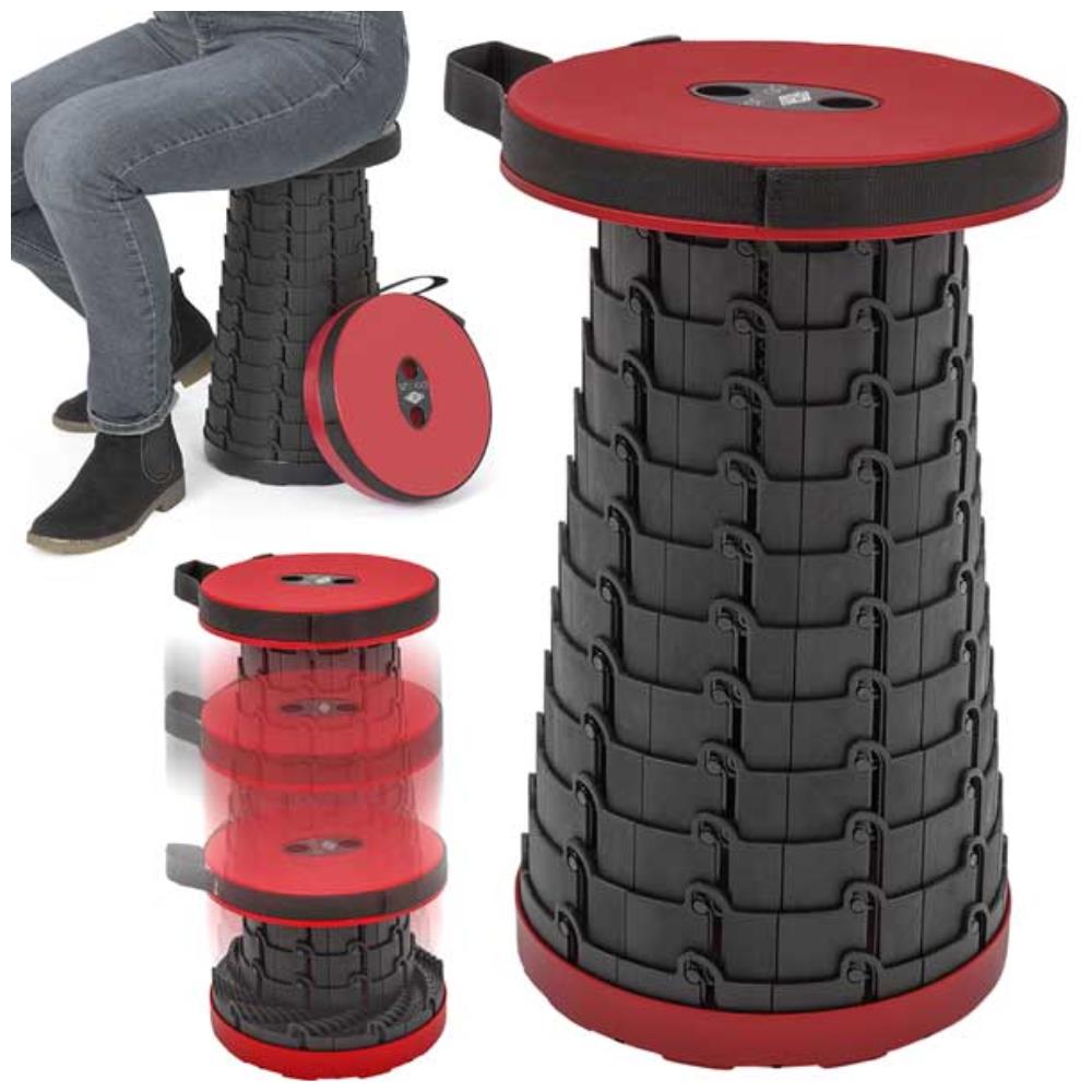Smart teleskopisk pall som enlkelt justeras till önskad bekväm sitthöjd. Perfekt för hantverkare, sparar rygg och knän vid låga jobb. Passar även för friluftsliv, liten och behändig att ha med sig, väger bara 1,28 kg. Tillverkad i robust höghållfast nylon. Med bärhandtag och axelrem.